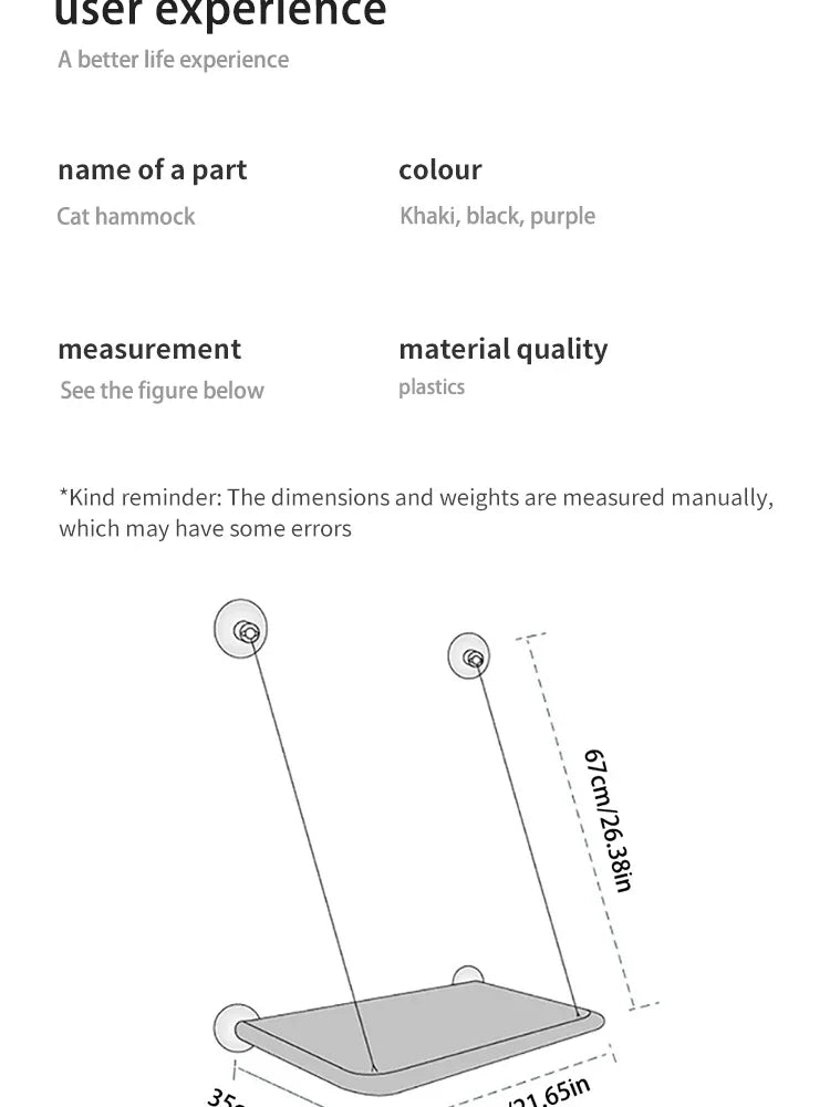Made from soft, breathable fabric, it keeps your cat comfortable while enjoying a sunny perch or watching the world outside. Its space-saving design makes it perfect for apartments or homes with limited floor space. Installation is simple, and the sturdy construction ensures your pet can relax safely and securely.